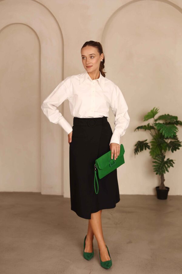 חצאית מעטפת שחורה עם חגורה