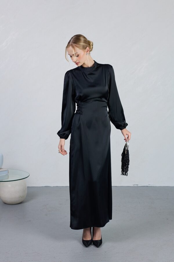 שמלה מקסי סאטן שחורה עם שרוכים
