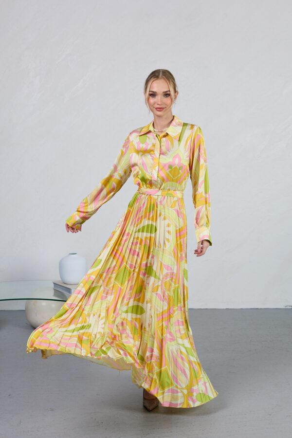 שמלת חולצה סאטן מודפסת יוקרתית
