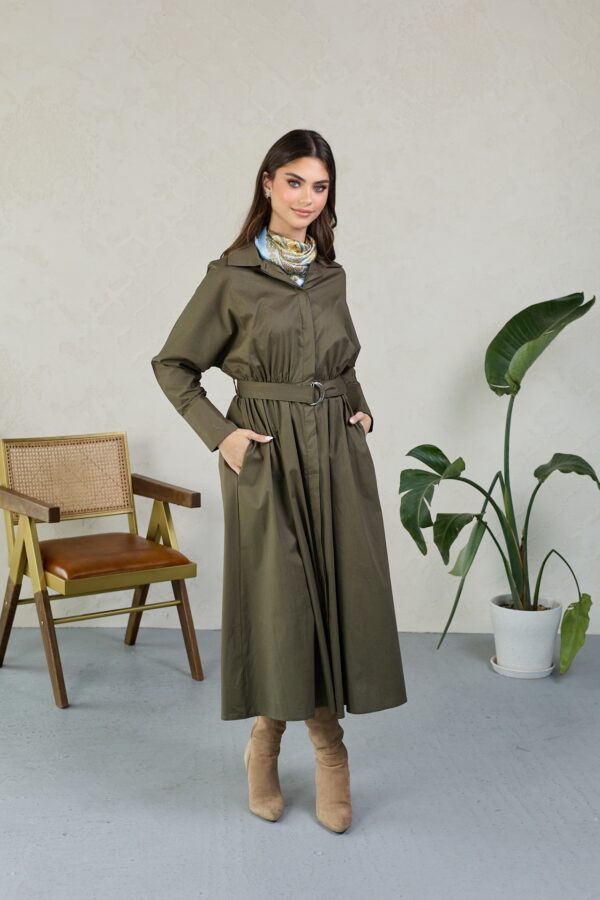 שמלת מעיל שמנת עם כפתורים זהב
