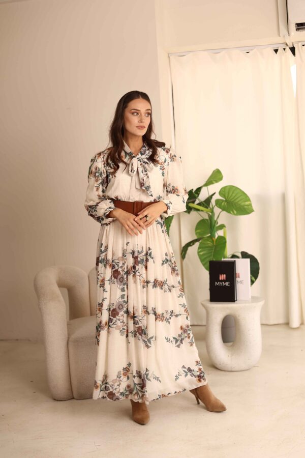 שמלה מקסי בהדפס פרחים חומים עם חגורה