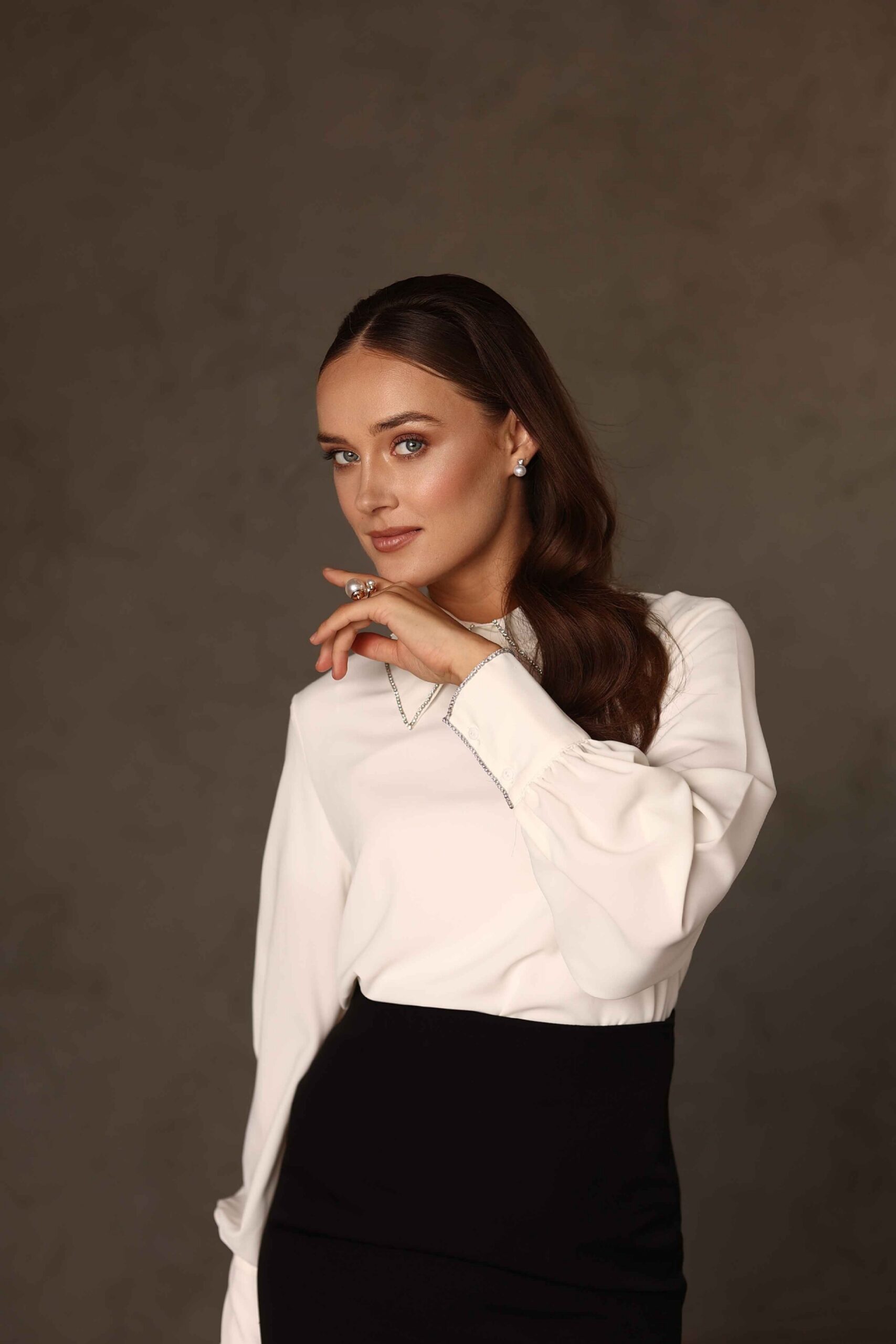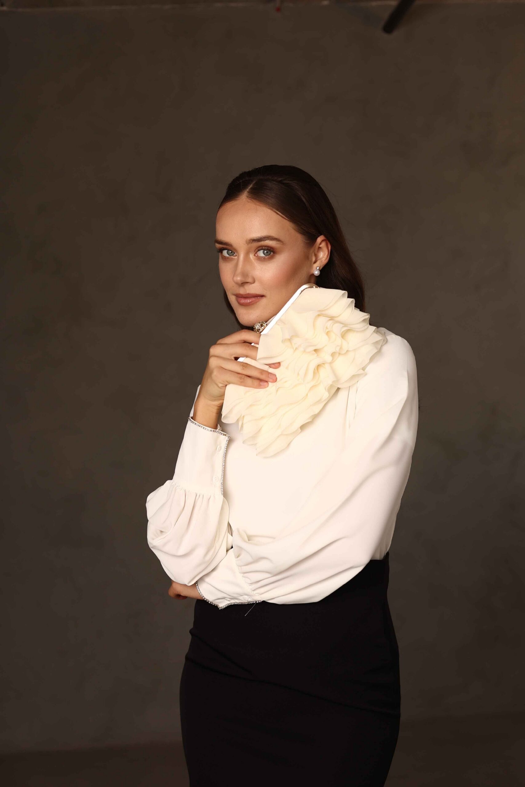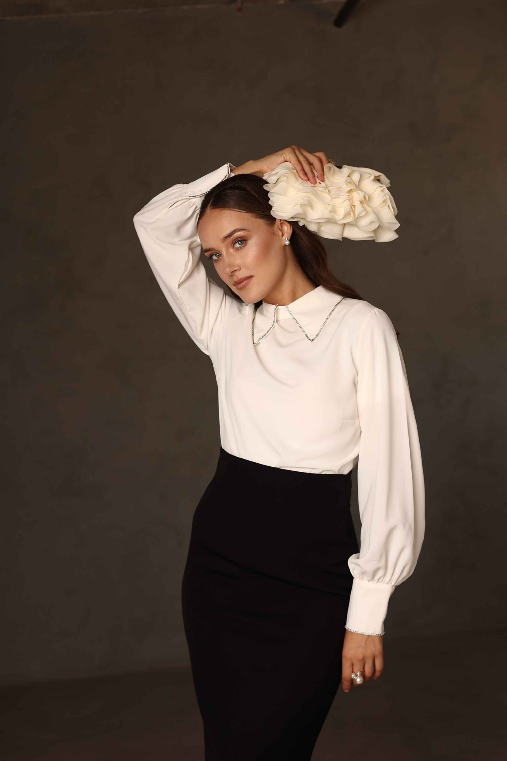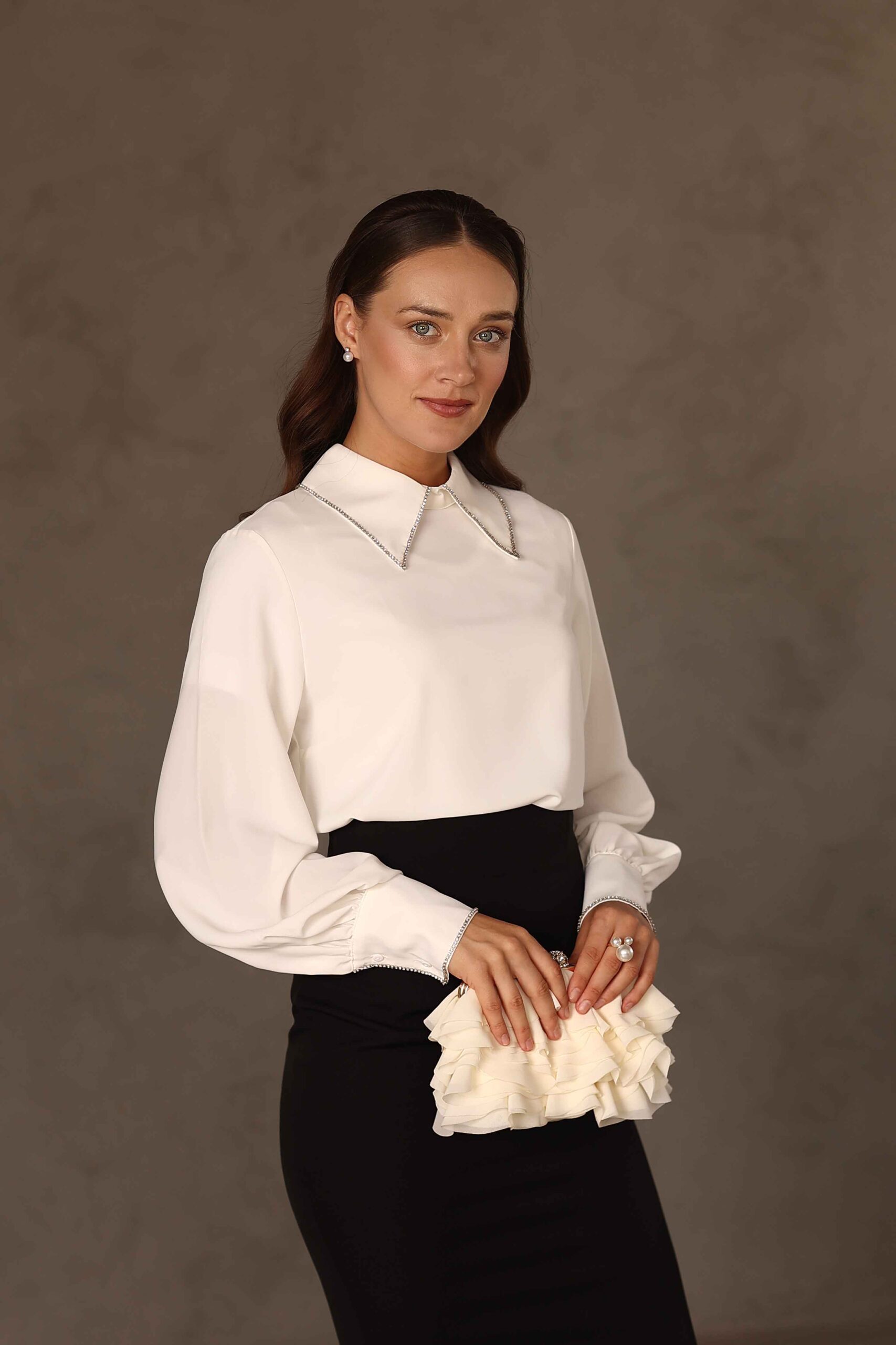 חולצת צווארון אבנים שמנת